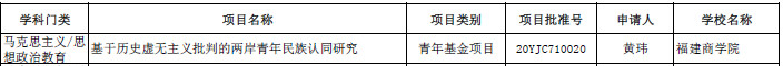 2020年3月20日,教育部社会科学司公布的《教育部社科司关于2020年度教育部人文社会科学研究一般项目立项的通知》文件中,米兰官网黄玮博士申报的项目《基于历史虚无主义批判的两岸青年民族认同研究》,历经多次的修改,不断打磨,功夫不负有心人,最终获得教育部社科青年基金立项。