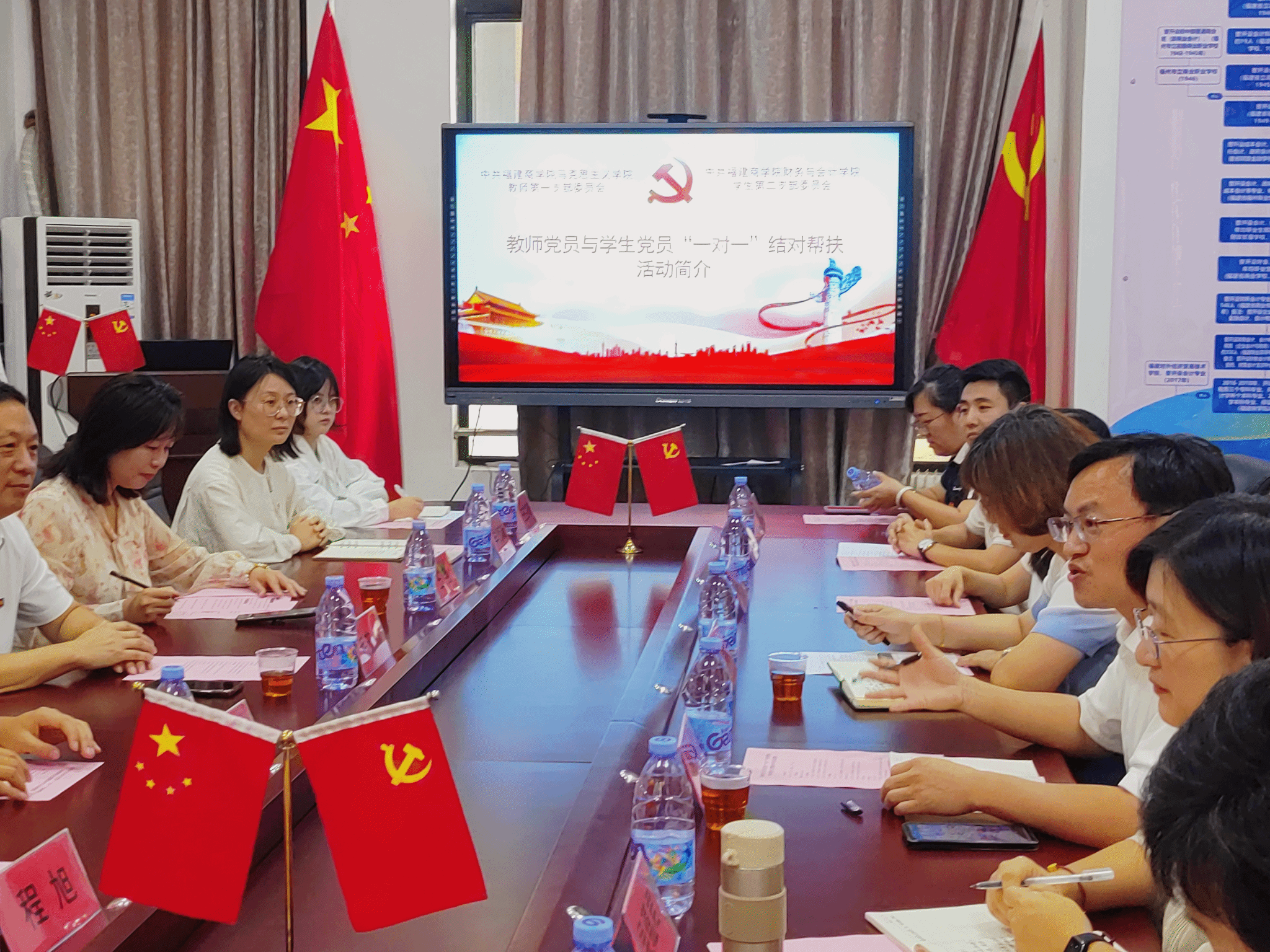 会上,谢东俊详细介绍了教师党员与学生党员“一对一”结对帮扶的工作目标及工作内容,并结合全省高校“双带头人”教师党支部书记“强国行”专项行动团队工作内容、自身帮扶学生经历等生动阐述了活动意义。林萍从明确责任、注重实效、创新方法三个角度对教师党员提出具体要求,希望教师党员能够走近学生、亲近学生,促进和引领学生发展。毛茂山围绕感恩、主动、期待三个关键词对学生党员提出成长建议,希望学生党员主动请教党员导师,立报国强国大志向、做挺膺担当奋斗者。林萍和毛茂山一同为参与教师党员与学生党员“一对一”结对帮扶的师生颁发了聘书,教师党员代表陈火荣、学生党员代表程旭,就本次结对帮扶活动的认识、期待及做法做了交流发言。