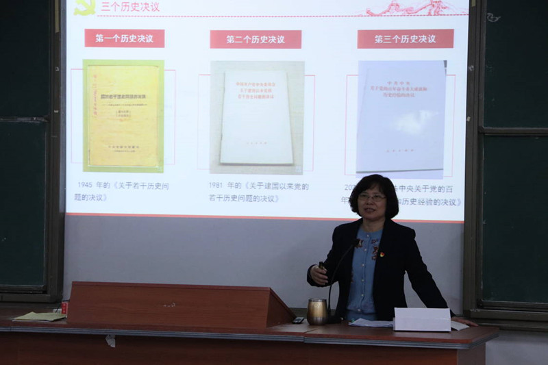 我们从讲座中学习党史,进一步理解决议,也从中明白奋斗的道理。作为时代新青年的我们更要以史为鉴、开创未来,接过时代的接力棒,为祖国的发展发奋图强,贡献出自己的一份力量。