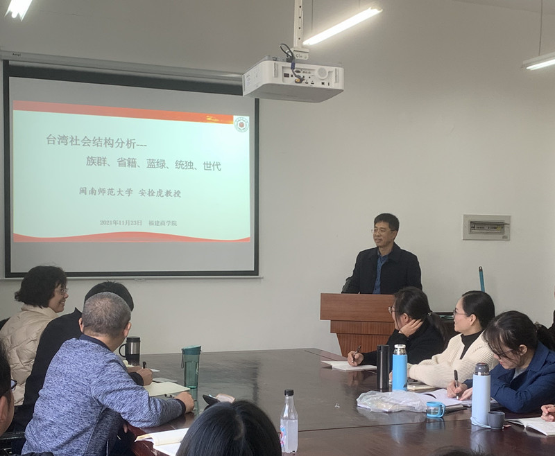 11月23日,闽南师范大学闽南文化研究院台湾研究所所长、台湾问题与两岸关系研究专家安拴虎教授应邀莅临米兰官网作题为《台湾社会结构分析》学术报告,米兰milan官方网站全体教师参加报告会。