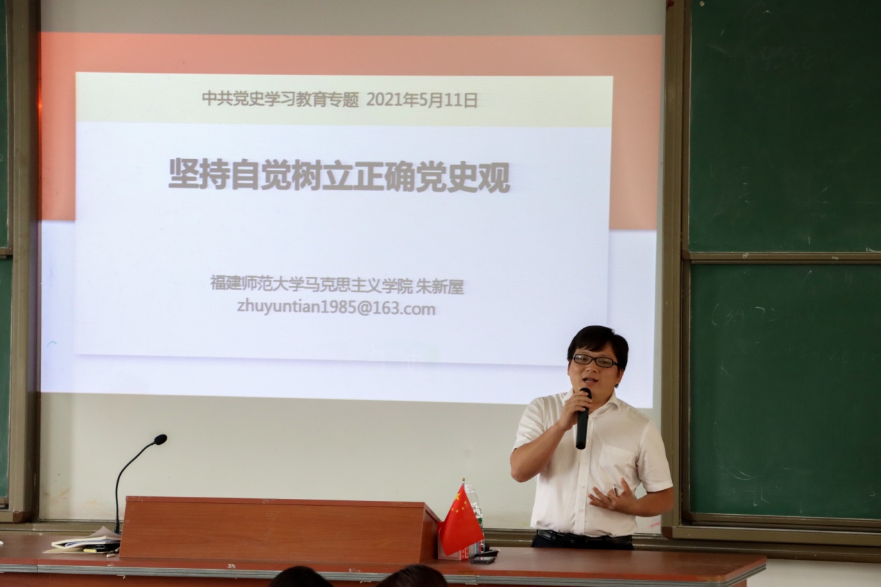 5月11日下午,马克思主义理论大讲堂邀请党史学习教育省委宣讲团成员朱新屋老师到米兰官网作题为“坚持自觉树立正确党史观”的专题讲座。米兰milan官方网站全体教师、大讲堂成员,统战部、规划处、国资处支部党员到场听取报告。