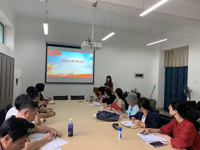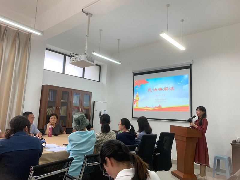 2020年10月13日下午,米兰milan官方网站直属党支部在院部会议室召开了《中华人民共和国民法典》的学习活动,马院副教授李莹老师做了题为《民法典解读》的主题讲座。讲座由林萍书记支持,马院全体党员教师聆听了这场讲座。