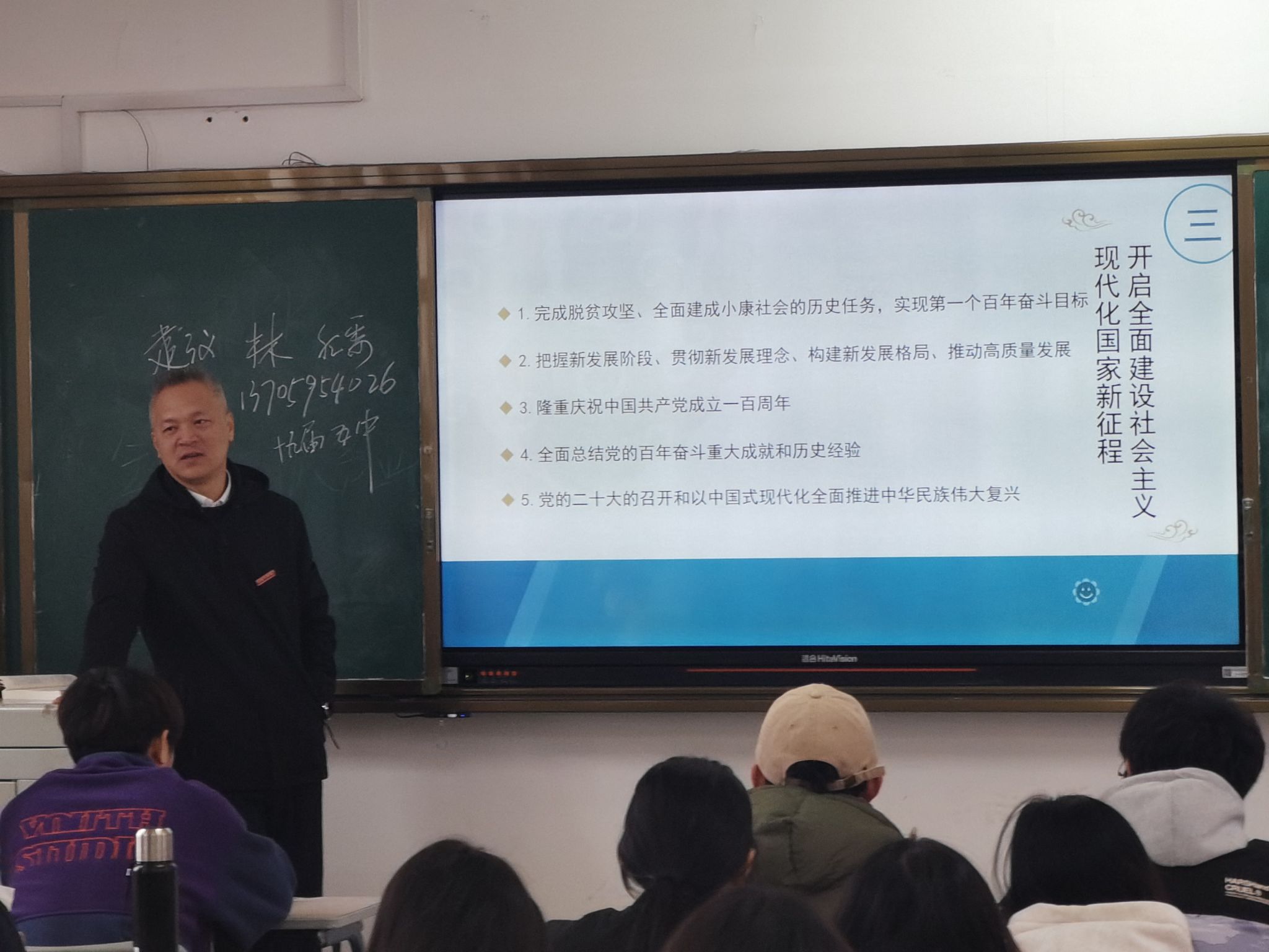 12月21午,校纪委书记林宇峰为艺术设计学院2023视觉传达设计专业学生们讲授了中国近现代史纲要课程第十章第三节“开启全面建设社会主义现代化国家新征程”