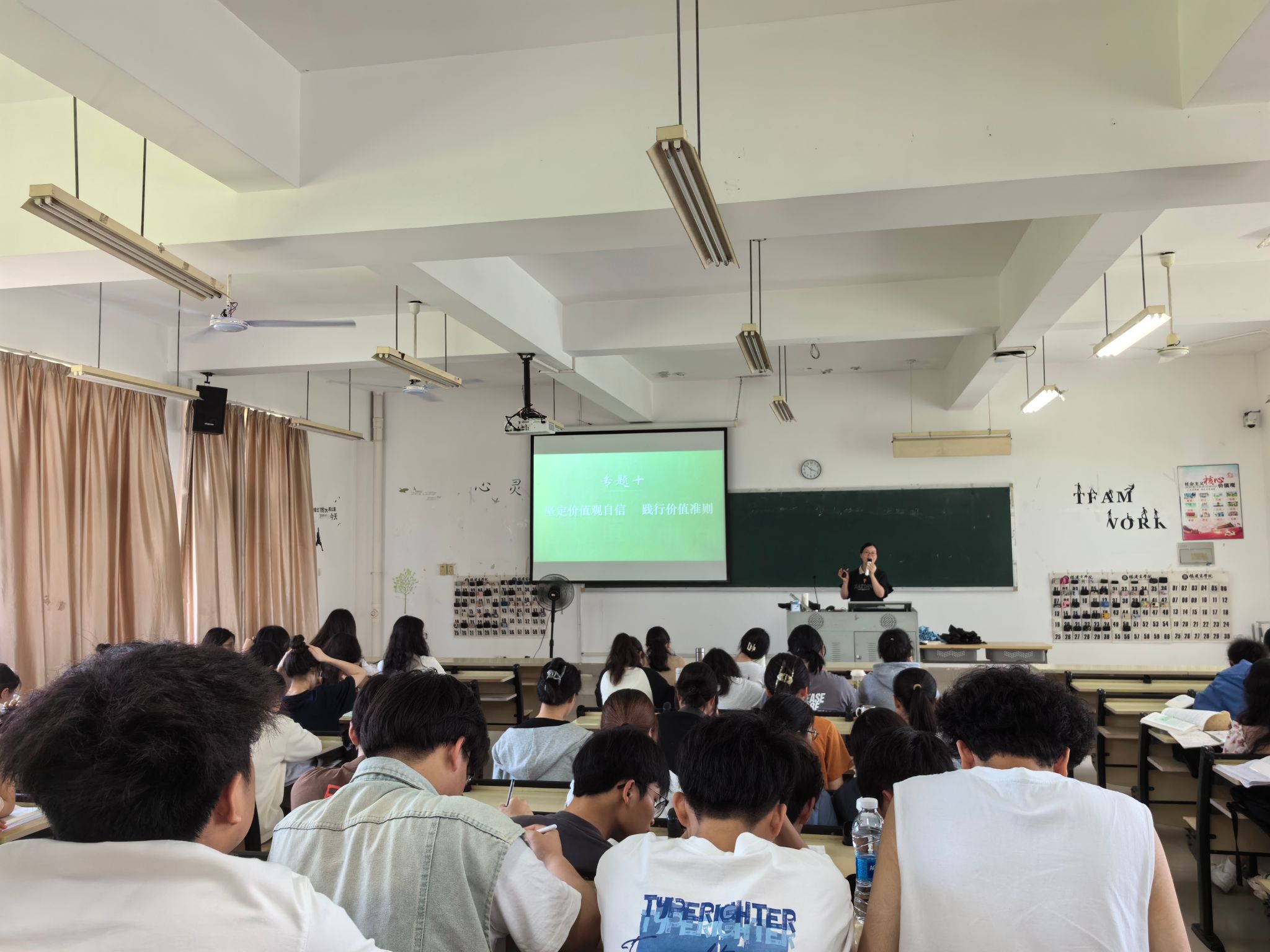 4月15日上午,米兰milan官方网站思想道德与法治教研室蓝福秀老师以“坚定价值观自信 践行价值准则”为主题,在马尾校区至善楼楼T3教室开展本学期公开示范课教学,近110名师生参与观摩。