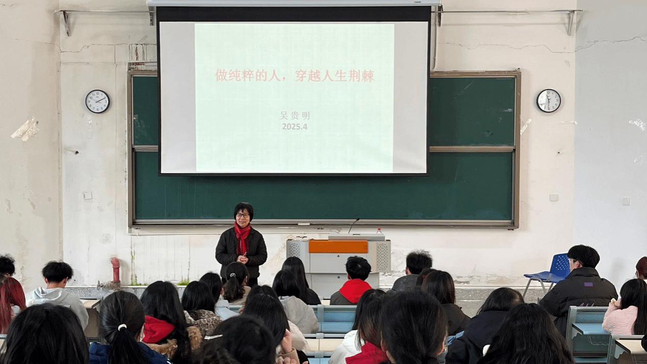 应米兰milan官方网站邀请,4月1日下午,福建省委党校吴贵明教授到米兰官网马尾校区国际厅为马列经典著作读书社全体社员作题为“做纯粹的人 穿越人生荆棘”的专题讲座。
