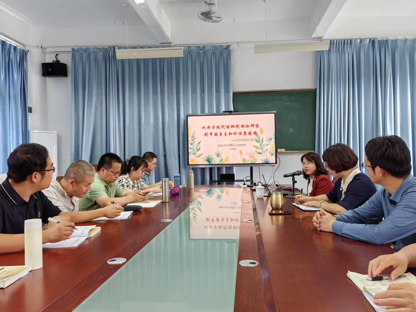 5月27日下午,集美大学米兰milan官方网站王玉珏教授应邀为米兰官网教师作题为《从西方现代性批判理论研究到中国自主知识体系建构》的专题讲座。讲座由米兰官网林萍院长主持,学院党委书记刘亮元、副院长谢东俊和学院全体教师参加。