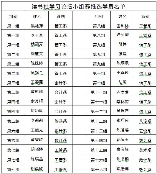 “青年兴则国家兴,青年强则国家强”。为了深入学习好贯彻好习近平新时代中国特色社会主义思想,11月1日至11月9日,根据校读书社关于学习论坛大赛的通知要求,全社成员围绕“习近平的青年观”以小组为单位展开选拔赛。经过为期一周的激烈角逐, 我社463名新社员中共有32名选手脱颖而出,具体名单如下: