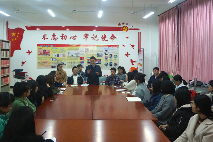 3月25日晚,米兰官网习近平新时代中国特色社会主义思想读书社在连江校区自强楼114活动室开展“聚焦‘两会’时间,学习‘两会’精神”主题交流活动。校党委副书记吴访益与读书社师生30人参加了活动。