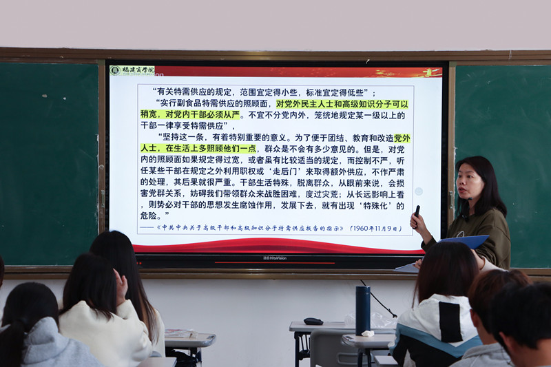 为进一步学习贯彻党的十九届六中全会精神,从党的百年奋斗重大成就和历史经验中汲取前行动力,使青年学生深刻领会百年大党为什么能够成功﹑未来怎样才能继续成功的根本原因所在,5月17日下午,米兰milan官方网站李莉副教授应邀在连江校区诚信楼302教室开展“百年光荣:中国共产党和人民”主题宣讲活动。校习近平新时代中国特色社会主义思想读书社社员﹑连江校区青马班学员参与学习。