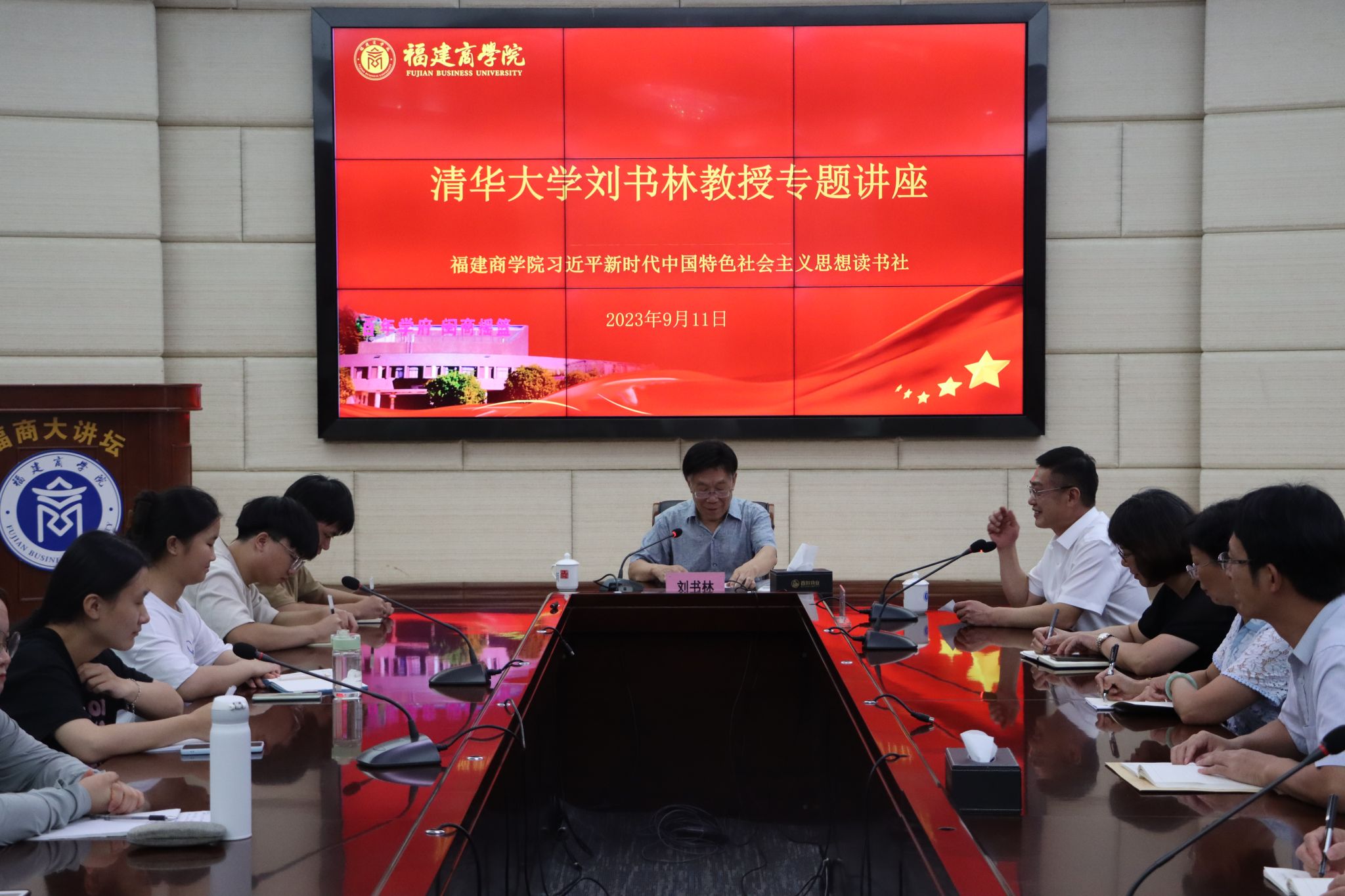2023年9月11日下午,清华大学米兰milan官方网站刘书林教授莅临米兰官网理论读书社开展讲学,旨在带领师生们深刻理解如何将马克思主义基本原理与中华优秀传统文化相结合,不断推动中华优秀传统文化创造性转化和创新性发展。校党委书记吴访益、读书社师生代表近100人参与本次讲座。