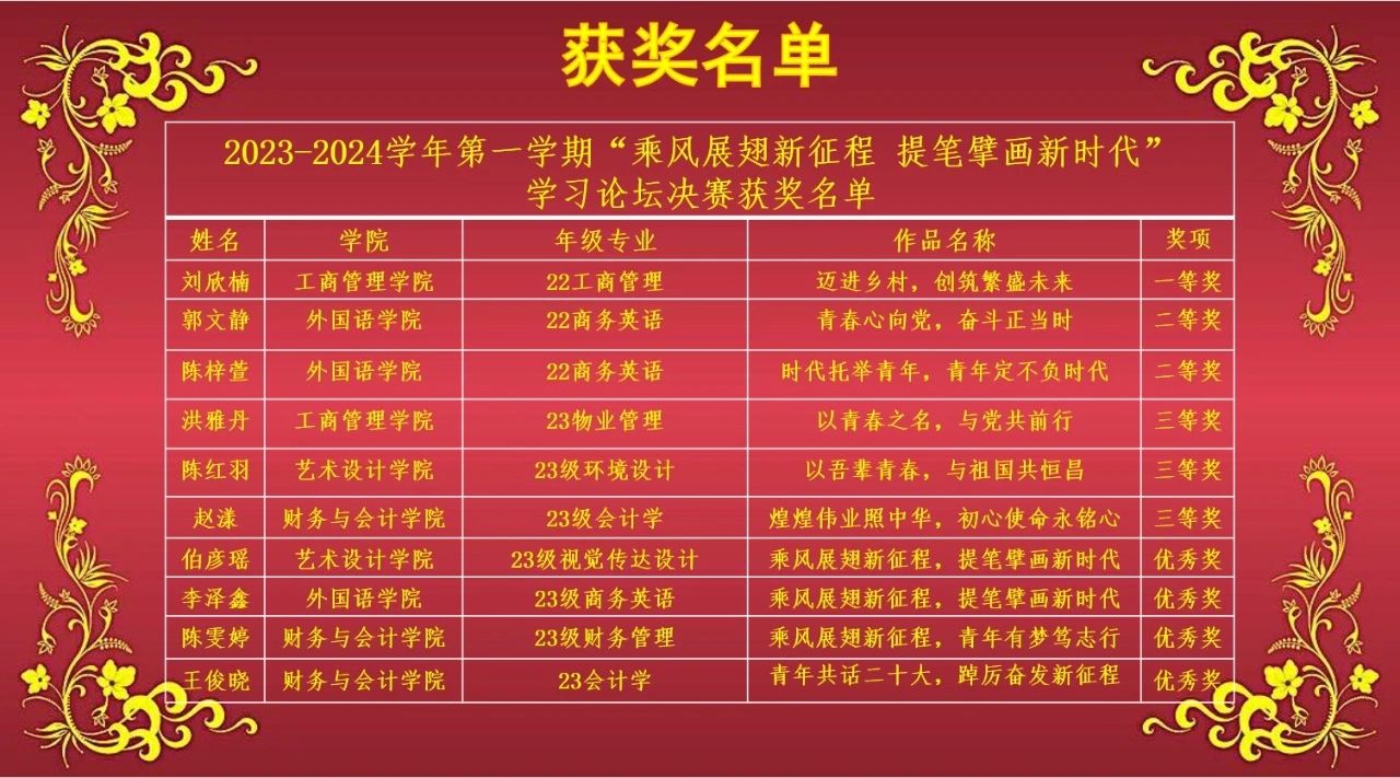 2023年12月5日下午,校习近平新时代中国特色社会主义思想读书社、校马列经典著作读书社在连江校区诚信楼中阶三教室举办了“乘风展翅新征程 提笔擘画新时代”主题学习论坛决赛。米兰milan官方网站部分教师及校读书社社员逾200人参与了此次活动。
