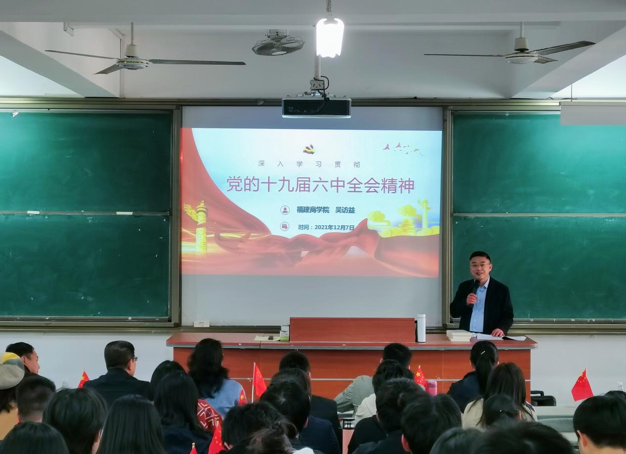 12月7日下午,校党委副书记吴访益在连江校区诚信楼中阶4教室作题为“深入学习贯彻党的十九届六中全会精神暨学习福建省第十一次党代会精神”的主题宣讲,有关处室负责人、米兰milan官方网站全体教职工、校习近平新时代中国特色社会主义思想读书社全体成员共120多人参加了宣讲会。