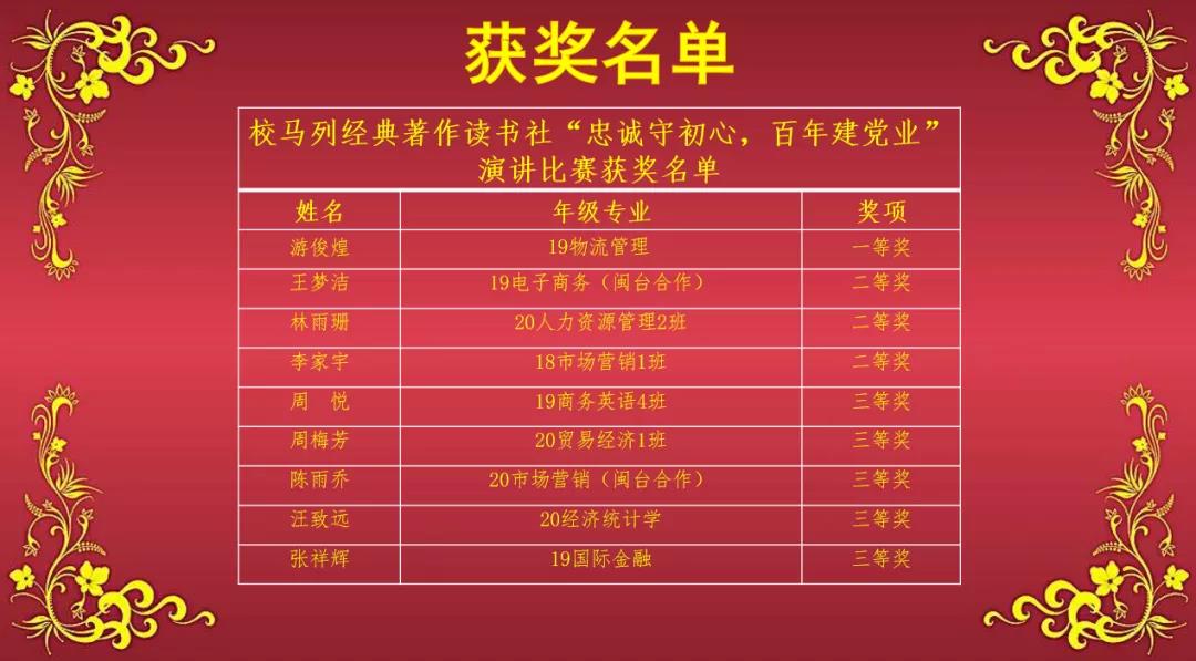 2021年是中国共产党建党100周年,在这特殊的历史节点,为向党的一百岁生日献礼,同时也为坚定大学生不忘初心跟党走的信念,米兰官网马列经典著作读书社于2021年4月21日晚19:30在马尾校区非洲厅举办“忠诚守初心,百年建党业”主题演讲比赛,米兰milan官方网站陈火荣老师、蓝庆专老师应邀担任本次比赛评委。