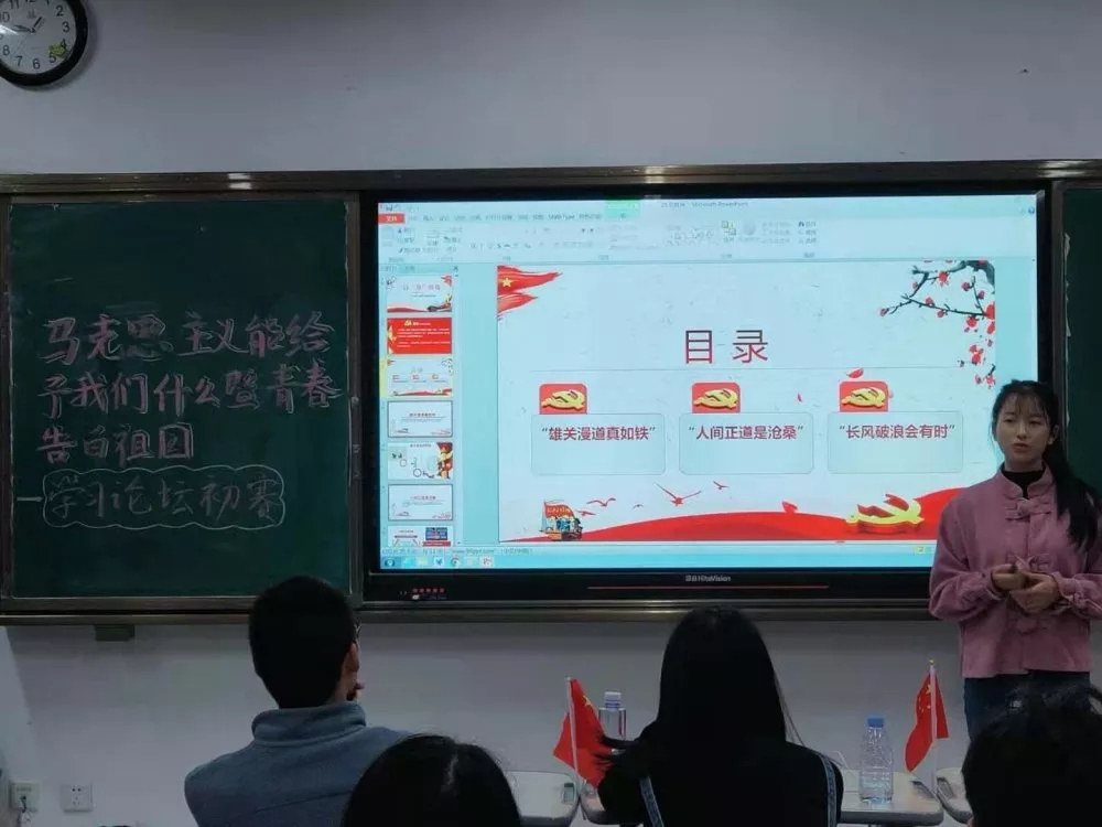 为进一步深入学习马克思主义,特别是习近平新时代中国特色社会主义思想,宣传新中国成立70年来取得的巨大成就。2019年11月26日晚习近平新时代中国特色社会主义思想读书社在连江校区诚信楼509开展了以“马克思主义能给予我们什么暨青春告白祖国”为主题的学习论坛初赛。财务与会计学院刘佳老师,米兰milan官方网站赵敏老师、叶陈钦老师以及读书社陈舒睿、雷和林两位同学担任本次活动评委。