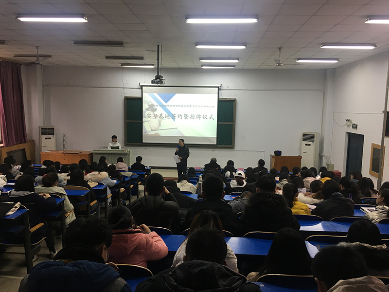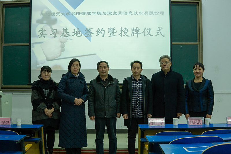 12月24日下午,会计系在西院东阶梯教室举办与微宝云信息技术有限公司建立实习基地的签约暨授牌仪式。微宝云信息技术有限公司李俊强总经理、开云kaiyun登录入口副院长赵宇、实践教学部部长张风海、会计系党总支书记蔡杨、会计系主任王慧霞、微宝云信息技术有限公司项目代表及196名学生参加本次活动。