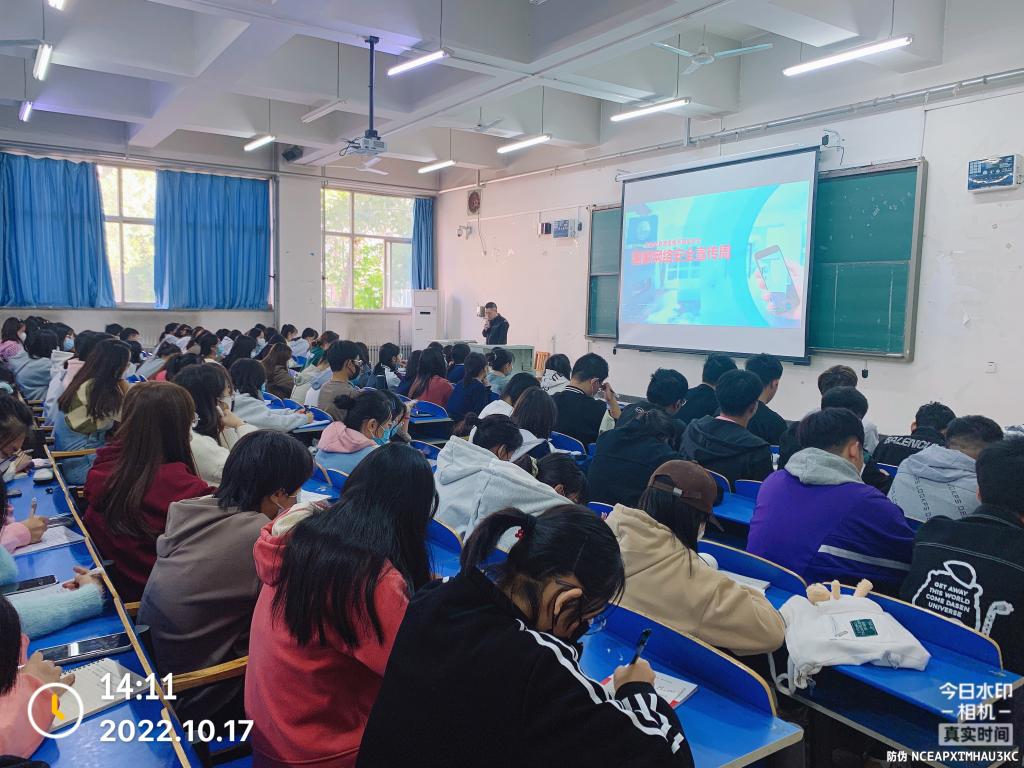 为宣传贯彻习近平总书记关于网络强国的重要思想,加强《中华人民共和国网络安全法》等法律法规的宣传,普及网络安全知识,引导师生在“学网、懂网、用网”中不断提升网络安全意识和综合防护能力。实践教学部在南校区三教205和西校区西阶梯教室组织各系大一新生代表近1000余人,开展2022年国家网络安全宣传周校园日活动。管理系范丽波和商务系刘亚宁两位老师一同出席本次活动。