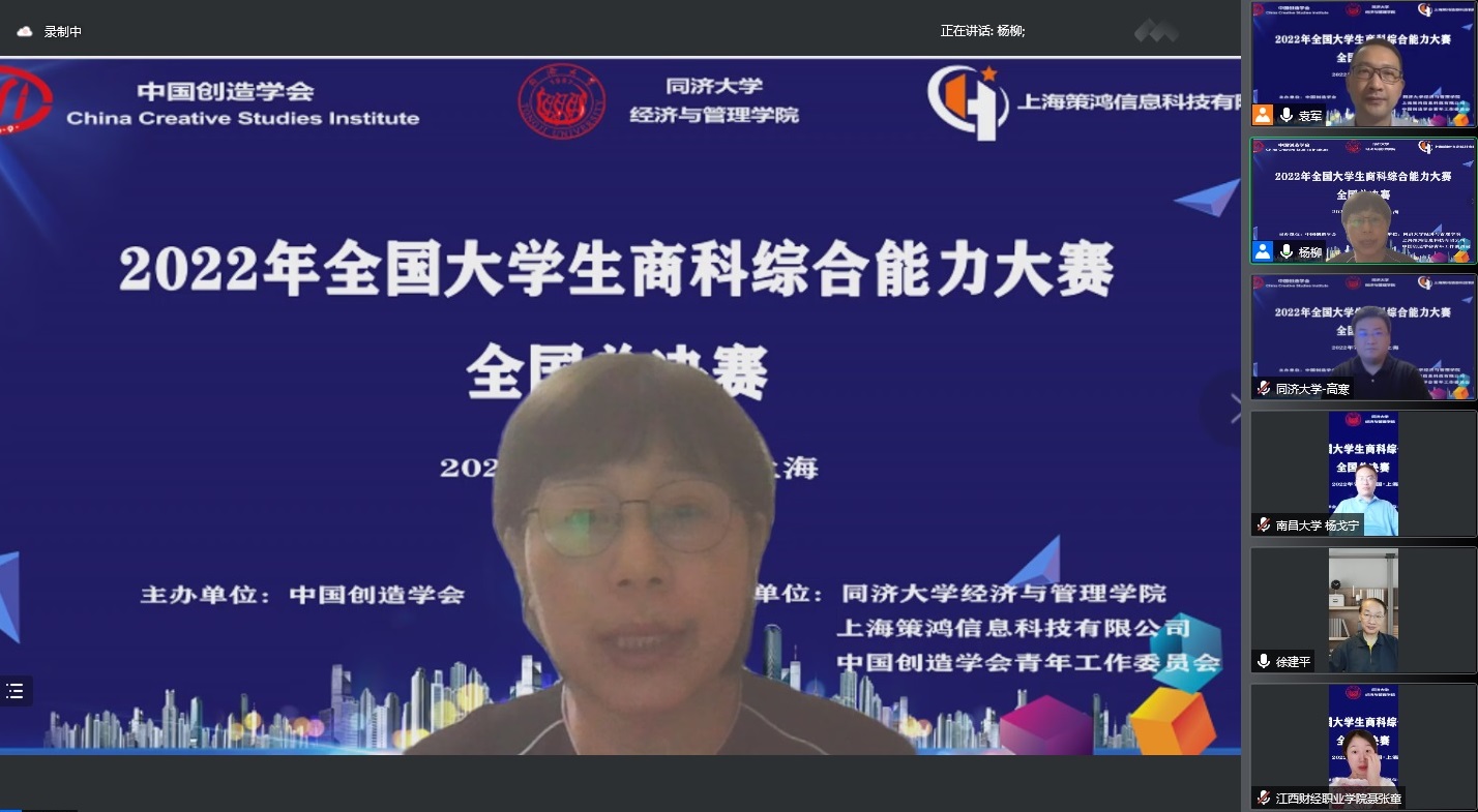 2022716日至17日由中国创造学会主办,同济大学经济与管理学院、上海策鸿信息科技有限公司、中国创造学会青年工作委员会承办的2022年全国大学生商科综合能力大赛全国总决赛在线上举行。开云官网商务系李佳林、路铂涵、李霄鹏组成的代表队,通过一天紧张激烈的比拼,以小组第一的成绩进入总决赛答辩环节,并最终荣获全国总决赛特等奖。