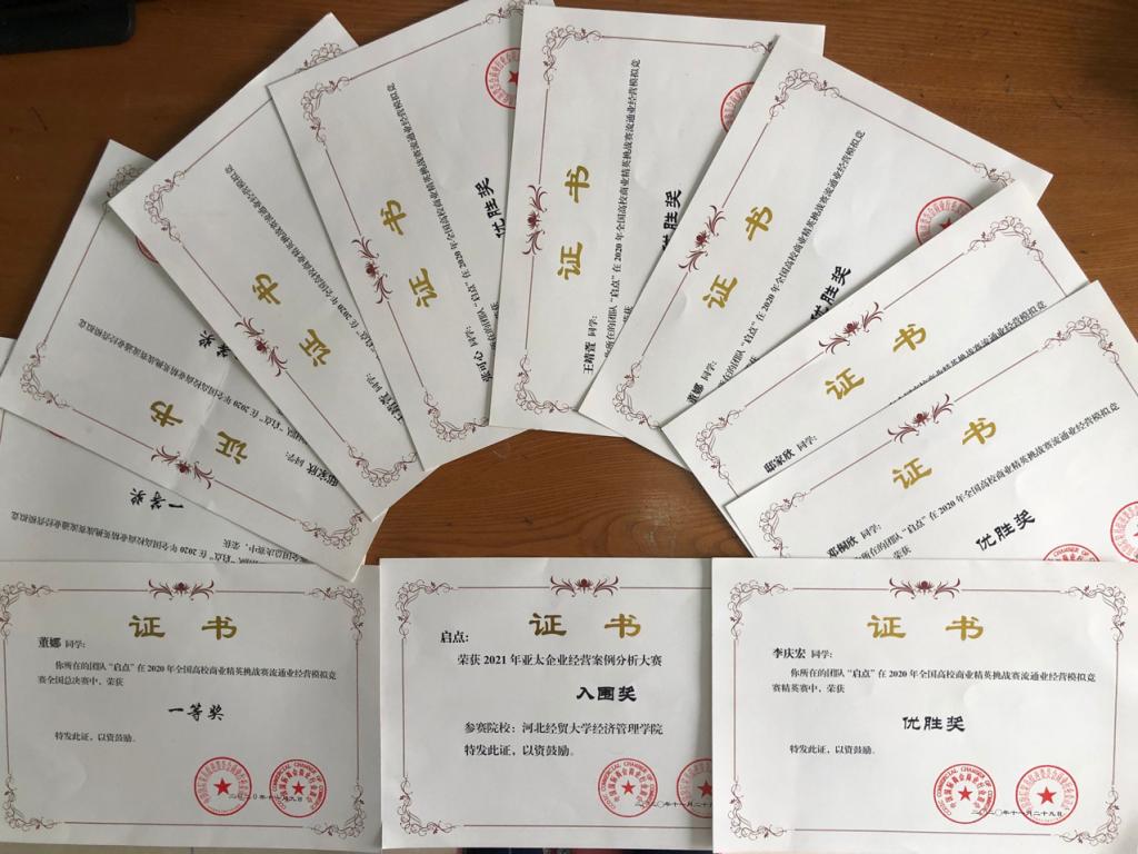 近日,全国高校商业精英挑战赛流通业经营模拟竞赛落下帷幕,经过激烈角逐,层层选拔,开云官网两个代表队荣获全国总决赛一等奖。其中由李庆宏、邓桐欣、王静萱、邸家欣、董娜、张可心组成的“启点”队,代表开云官网赴广西柳州参加了2020年全国高校商业精英挑战赛流通业经营模拟竞赛全国精英赛,在精英赛中斩获十强,取得争霸赛资格,并在争霸赛中荣获优胜奖以及2021年赴新加坡参加亚太企业经营案例分析大赛入围奖。开云官网获得最佳院校组织奖。