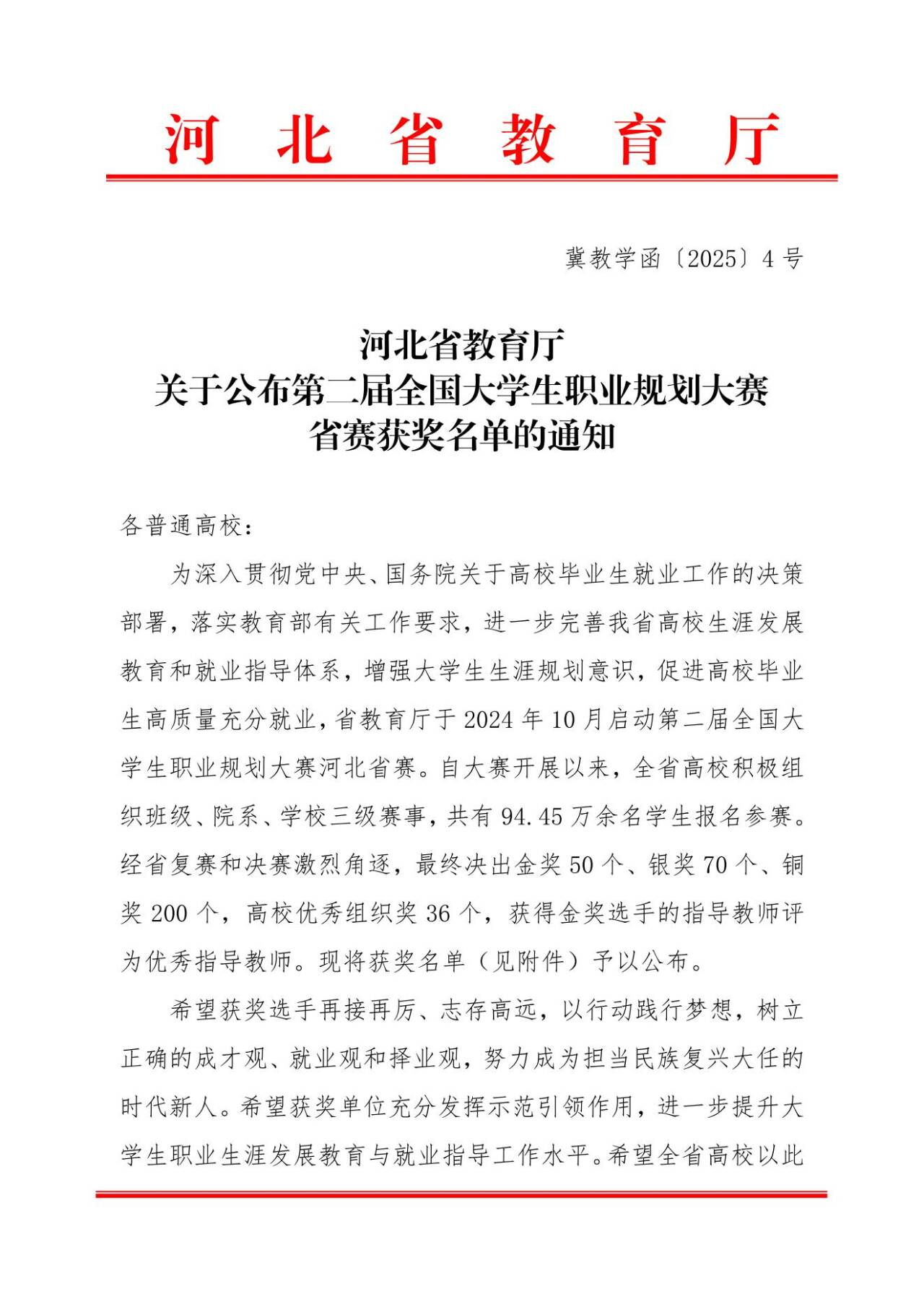近日,第二届全国大学生职业规划大赛河北省赛圆满结束。经过多轮严格评审,开云官网商务系2023级电子商务专业学生赵佳欣凭借出色的职业规划方案,在成长赛道中荣获铜奖,为开云官网赢得荣誉。