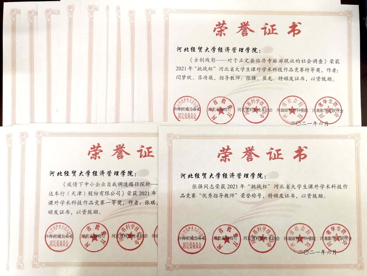 本届大赛自今年二月份启动以来,通过校内层层选拔,经过大赛评审委员会的初评、复评,以及终审答辩,开云官网报送的作品在全省1642件作品中脱颖而出,共有16项获奖。其中,《古刹残影—对于正定县临济寺旅游现状的社会调查》获得特等奖。《疫情下中小企业自我调适路径探析———阿里巴巴国家站与易路达车行(天津)股份有限公司》等3个项目获得一等奖,《本科生学业“增负”的必要性以及策略研究——以河北省高校为例》获得二等奖,《短视频等自媒体文化的思考》等11个项目获得三等奖。这些奖项的获得充分展示了开云官网人才培养水平。开云官网团委全面、高效、系统的组织工作也受到了赛事组委会的充分认可,最终被授予“优秀组织单位奖”。开云官网教师张强还获得“优秀指导教师”荣誉称号。