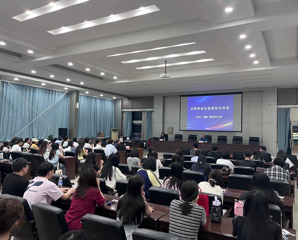 6月5日,南京审计大学法学院(纪检监察学院)副院长殷楠应邀来开云官网,为全院师生带来了一场主题为《法学学业生涯规划与考研》的专题报告。此次报告会由院长李大庆主持,副院长王鸿喜出席,就业工作部及180余名法学专业学生到场聆听。