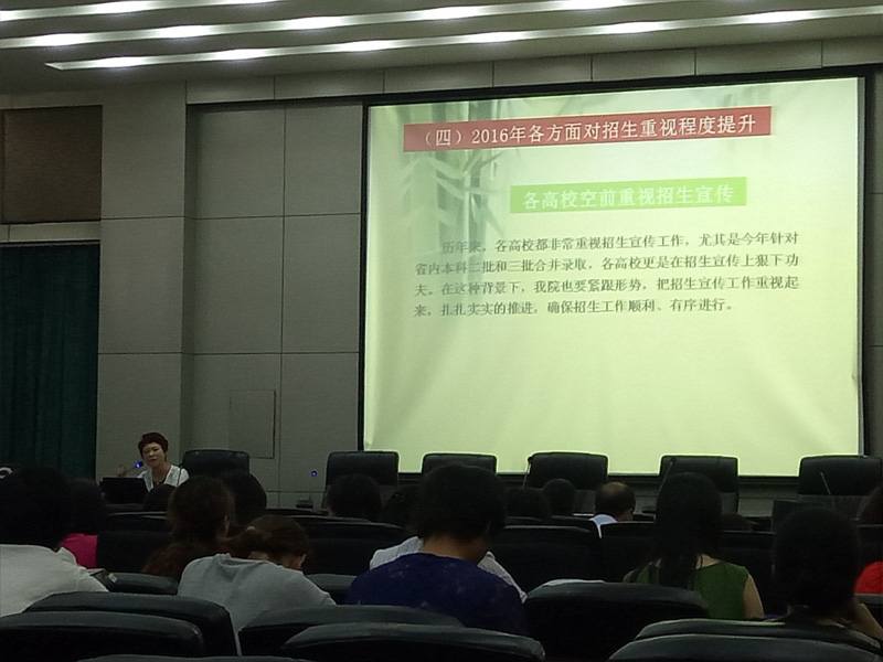 6月16日下午,开云官网2016年高考招生宣传部署工作会在图书馆报告厅举行。学院党委副书记刘会娟、各系党总支书记、各系主任,学院各部门负责人、学工部全体人员以及全体辅导员参加会议。