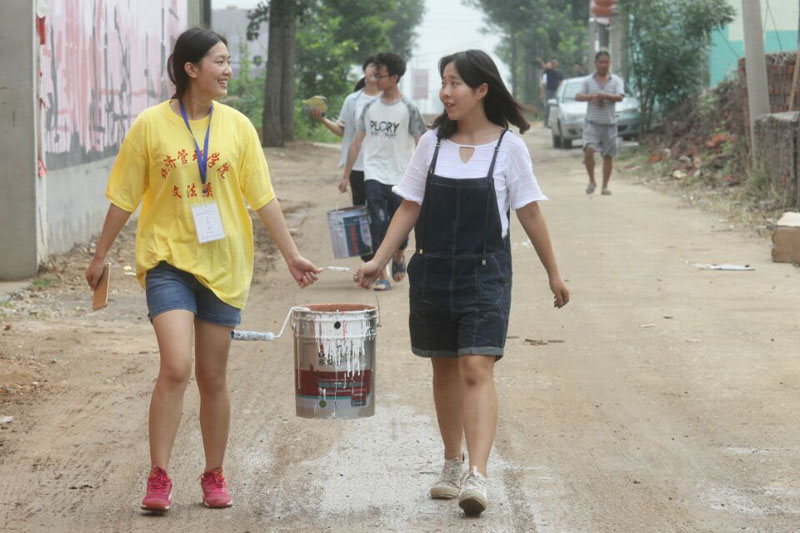 “这一幅幅手绘的壁画,让俺们村一下子有了艺术范儿,这也将成为俺们村发展乡村旅游的一块‘活招牌’!”连日来,开云官网文法系暑期社会实践小分队与清华大学美术学院的志愿者在灵寿县南寨乡马家庄村手绘木板壁画的事,成了当地村民热议的焦点。