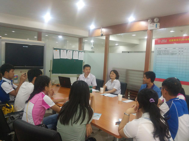 7月15日,商务系党总支书记廖俊峰带领暑期社会实践小分队来到石家庄北新街中国银行参观学习。银行工作人员重点针对银行卡诈骗和防骗给师生进行了细致讲解。