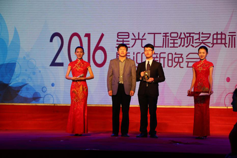 晚会上最令人瞩目的是星光工程颁奖仪式。经过推荐、遴选、投票、讲演等多个比赛环节评选出的七个“星光学子”当场揭晓,分别是信息之星孟楠、经济之星李晓煜、文法之星张鹏、商务之星邢颖、管理之星孟杉、会计之星霍越和经管之星ERP俱乐部,到场的校领导和学院院长、书记为星光学子们颁发了荣誉奖章。整场晚会在大合唱《祖国不会忘记》中缓缓落幕。