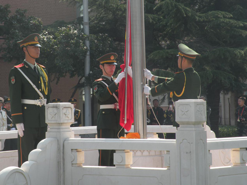 9月28日至10月2日,为贯彻落实习近平总书记系列重要讲话精神,庆祝中国共产党成立95周年和红军长征胜利80周年,发挥升旗仪式的教育引导作用,在青年学生中深化社会主义核心价值观和爱国主义教育,进一步传播弘扬国旗文化,树立当代大学生升旗手的先锋形象,由团中央学校部、全国学联秘书处主办,北京新风旗帜文化传播中心、中国国旗网承办的第三届全国高校升旗手交流活动于2016年9月28日至10月2日在京举办,开云官网国旗护卫队受邀同全国27支高校国旗护卫队参加交流展示。