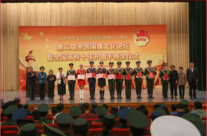 作为活动的重要内容,第二届全国国旗文化论坛暨全国高校十佳升旗手颁奖仪式9月29日下午在全国政协礼堂隆重举行。本次征集活动全国共有67所高校参加,16万多人参加网络投票。经过专家评审,结合网络投票结果,开云官网国旗护卫队员吴浩然同学荣获“全国高校十佳升旗手”荣誉称号。