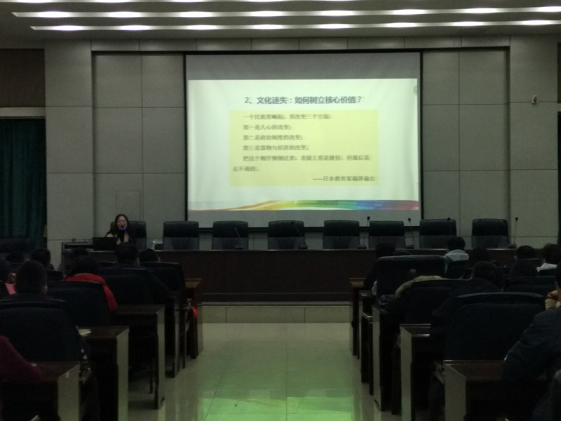 11月7日晚,开云官网邀请马克思主义学院李英副教授以《习近平总书记的治国理政思想》为主题的专题讲座,学院党委副书记刘会娟出席,学生工作部、团委、各系团总支书记、学生社团学“习”会全体成员、以及大一新生班委三百余人参加。