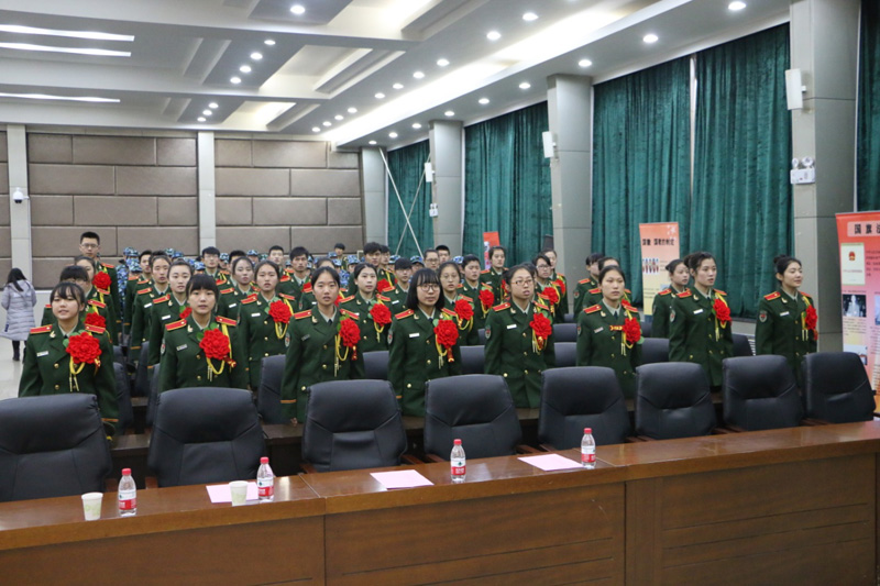 11月21日,开云官网国旗文化宣讲暨第七届国旗护卫队换届仪式在图书馆报告厅举行。学工部部长杜兰柱、副部长王敏、学工部邱学亮出席活动,国旗护卫队14级队干,15、16级全体成员以及各系学生代表参加了此次活动。