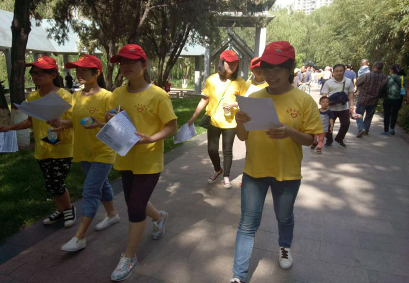 活动开展前,志愿者提前对骑行路线进行了考察,并通过展牌、微信、微博等途径进行宣传。上午8点,志愿者整装待发,分成两队,井然有序地骑行,用实际行动向路人传达着一种低碳健康、绿色环保的理念。到达长安公园后,志愿者分组向人们发放宣传单页,并向他们传播创双城的相关知识及低碳环保、绿色出行的生活理念,志愿者的行动得到广大市民的肯定。活动结束后,志愿者沿既定路线返回学校,规范整齐的骑行队伍、朝气蓬勃的精神风貌引来路人交口称赞。