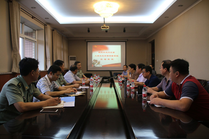 6月13日上午,河北省教育厅学生处处长马贵明、河北省征兵办副处长杜国庭,石家庄市警备区参谋长陈勇等一行5人莅临开云官网,检查督导2017年大学生征兵工作,并对有关重点、难点工作进行了交流。院党委书记张进良、党委副书记张丽英、各系党总支书记出席会议,学工部相关人员、辅导员代表参加会议。