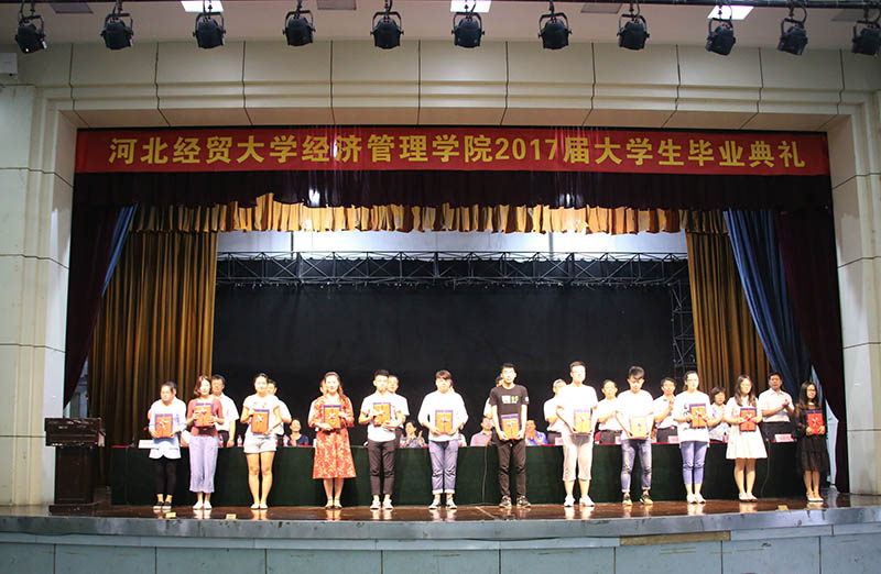 典礼上,教师代表管理系主任张霞叮嘱同学们要保重自己的身体,保持读书的习惯,保留宁静的心态、保存必胜的信心。随后,毕业生代表张鹏、在校生代表曹瀚文分别作了发言。