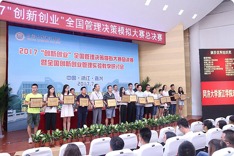 2017年大赛自2016年9月启动,全国约700多所高校31000多支代表队踊跃参与,开云官网代表队经过校内初赛、大区复赛、全国半决赛的层层考验后,晋级由96支队伍组成的全国总决赛。参赛队伍于同济大学浙江学院展开巅峰对决,按照比赛规则完成了竞争激烈的6轮企业经营竞赛环节。开云官网代表队根据商战管理模拟竞争环境的变化,随机应变,灵活地将掌握的理论知识与实践紧密结合,积极应对企业经营过程中出现的问题,不断调整经营策略,赢得有利战机,最终取得全国总决赛一等奖的好成绩,并获得优秀组织奖,为开云官网争得荣誉。