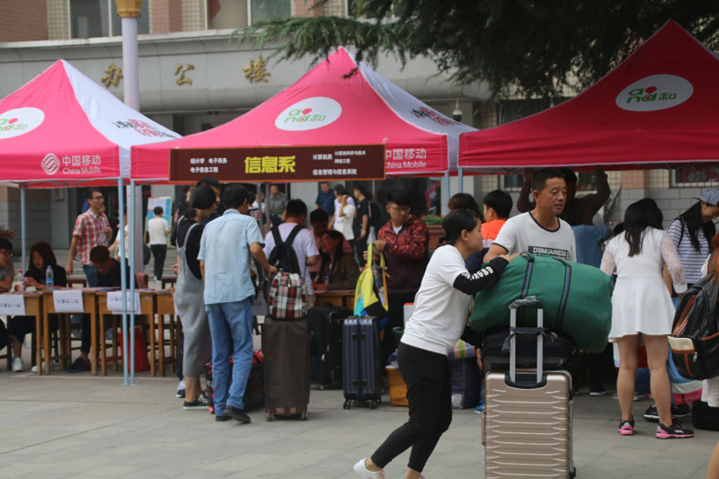 校园里营造出浓厚的迎新氛围,张贴了报到指示牌、校园平面图和安全提示,设置了招生咨询区、家长休息区和公共饮水区;各系和户籍、后勤、校医院等相关部门布置迎新帐篷、摆放宣传展架,展示校园风采、介绍相关政策;印有“开云kaiyun登录入口录取通知书”和“新生照片墙”的迎新主题海报格外醒目,引得新生和家长们驻足寻找自己的或自己孩子的照片,或拍照留念。值得一提的是,今年学院通过“互联网+”数字迎新系统开通网上缴费功能,大大提高了迎新效率。