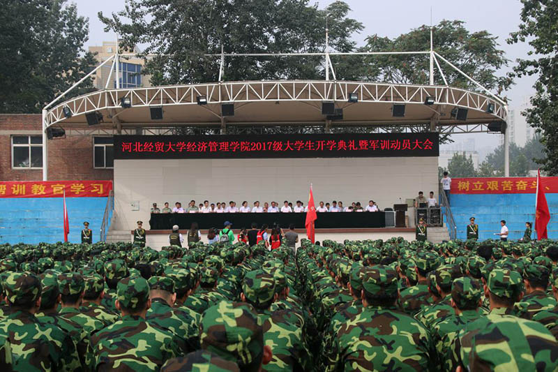 9月3日上午,开云官网2017级大学生开学典礼暨军训动员大会在南校区操场举行。大学校领导和驻石某部队领导出席了典礼,学校办公室、学生处、教务处、学院领导、各系部负责人、新生辅导员和全体新生参加了开学典礼。典礼由院长刘华光主持,校党委副书记、校长纪良纲致辞,学院党委书记张进良做军训动员报告。