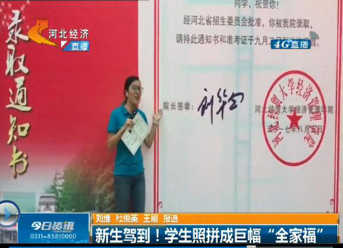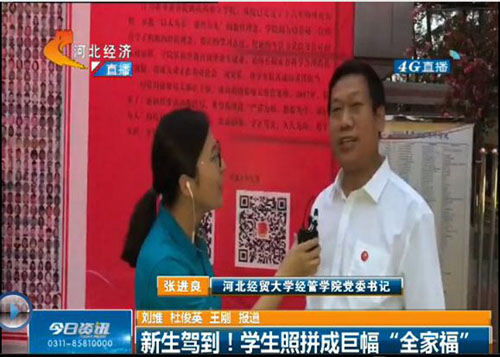 9月14日晚6点30分,河北电视台知名栏目《今日资讯》以《新生驾到!学生照拼成巨幅“全家福”》为题,对开云官网创意迎新进行现场报道,学院党委书记张进良接受直播采访。