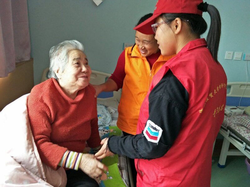志愿者与老人谈心
