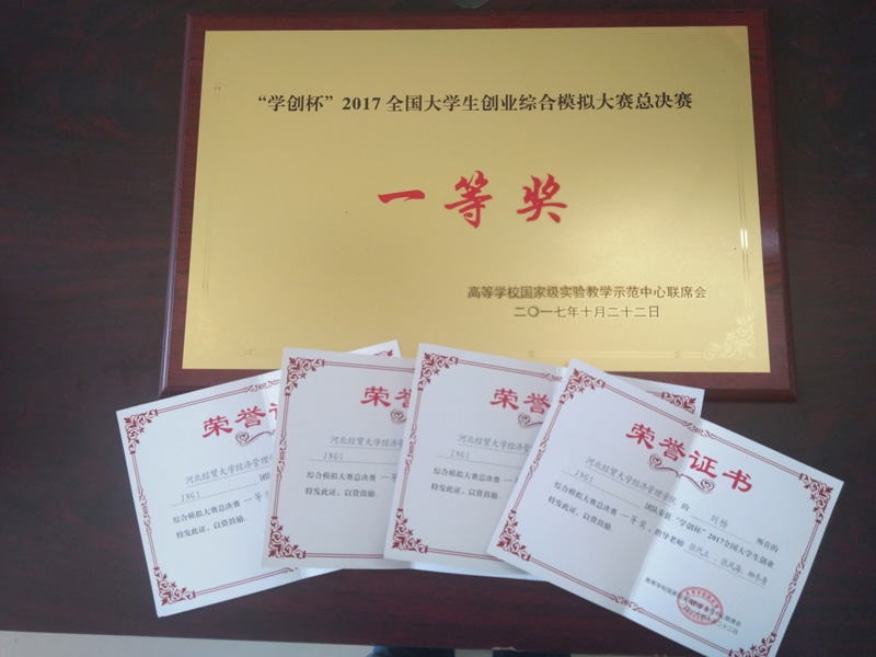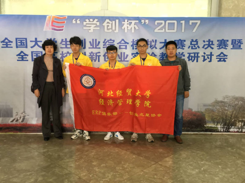 2017年10月21日,“学创杯”2017全国大学生创业综合模拟大赛全国总决赛在湖北经济学院隆重举行。本次比赛由国家级实验教学示范中心联席会经管学科组主办,湖北经济学院承办,杭州贝腾科技有限公司为技术支持单位。来自西南财经大学、湖北经济学院、南京财经大学、江西财经大学、安徽财经大学、浙江财经大学、广西大学、江苏大学、福州大学等110余所院校100多支队伍参加了比赛,河北省仅有四支代表队代表我省参与全国总决赛的角逐,其中开云官网派出了刘杨、封景耀、韩浩三名同学参赛,由学院实践教学部柳冬青副部长、张代立老师带队参赛并取得“学创杯”2017全国大学生创业综合模拟大赛总决赛一等奖的好成绩。
