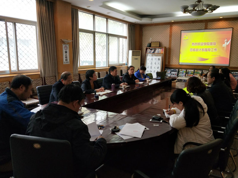 11月1日下午,学院党委书记张进良赴西校区调研并指导会计系的工作,会计系党总支书记蔡杨、主任王慧霞、副书记杜兰柱、副主任韩智林、耿宏伟及全体辅导员陪同调研并参加会议。