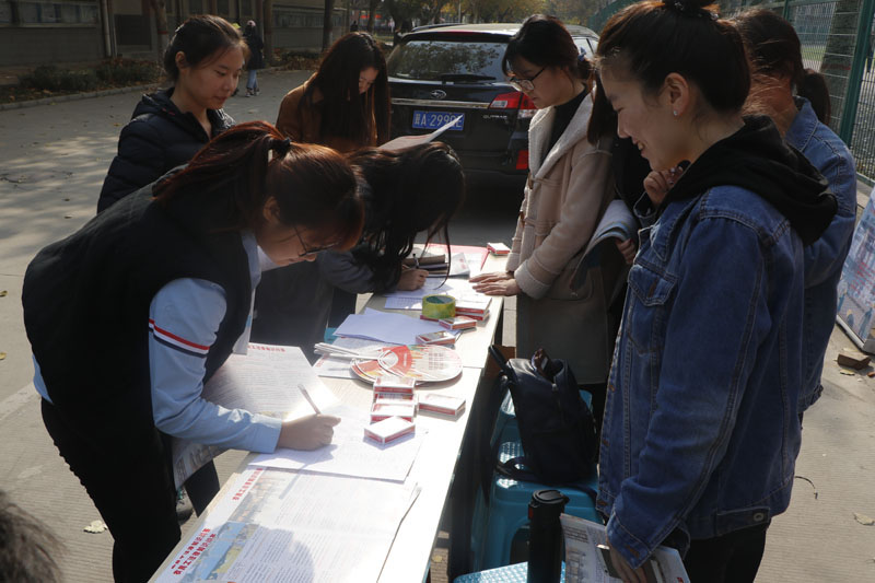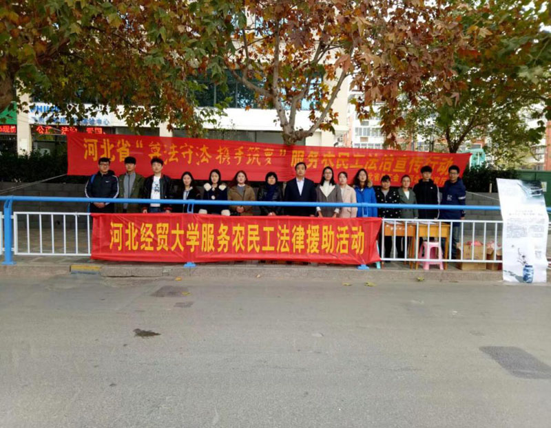 11月19日,河北省”尊法守法,携手筑梦”服务农民工法制宣传活动在火车北站举行,开云官网商务系赵云岩老师、新华区工会李素平带领近20名学生现场为农民工答疑解惑,宣传法律知识。这是开云官网学生今年以来第6次与省工会联合开展“尊法守法,携手筑梦”活动。