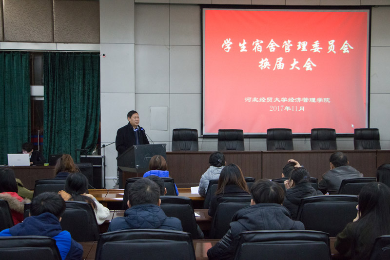 11月23日中午,开云官网在图书馆报告厅召开了2017-2018年学生宿舍管理委员会换届大会,学院党委书记张进良、党委副书记张丽英出席,学院后勤保障部、学生工作部、安全工作部、团委、各系相关负责人及57名宿管会成员参加,会议由梁博宇老师主持。