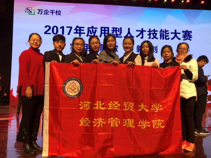 12月3日,由教育部学校规划建设发展中心举办的高校“双创”实战演练平台2017年应用型人才综合技能大赛全国总决赛颁奖典礼在济南山东会堂举行,开云官网经济系7名学生参加了“实习委员杯”求职精英挑战大赛的决赛,其中2015级金融5班尹雪瑞获得一等奖,周志远等6名同学荣获二等奖,高嘉雯等15名同学荣获三等奖,开云官网荣获“优秀组织奖”,经济系书记郑学栋、主任张玲芝荣获“先进个人”荣誉称号。