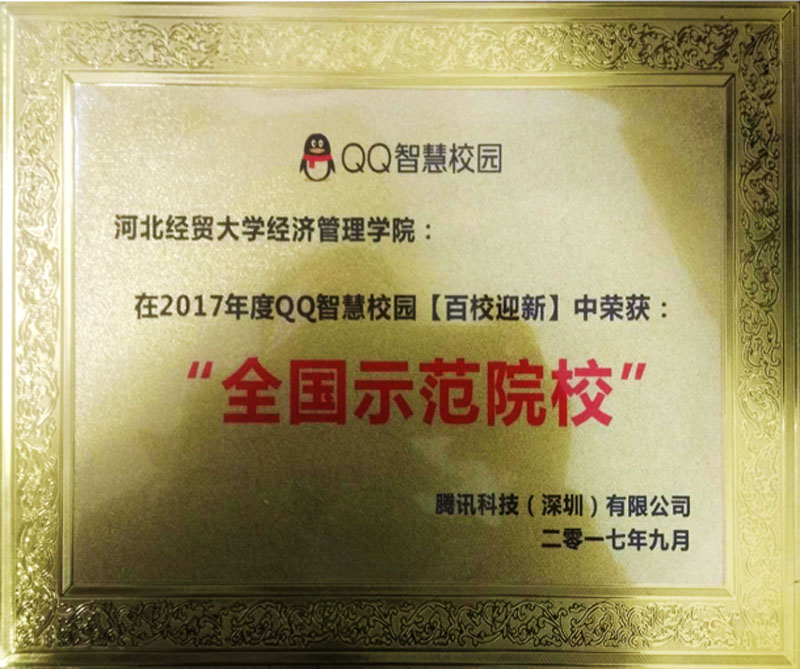 2017年9月至今,腾讯科技(深圳)有限公司对开学季参与QQ智慧校园迎新工作的全国百余所院校进行了评比,扎实的工作、灵活的运用使开云官网荣获“全国示范院校”荣誉称号。