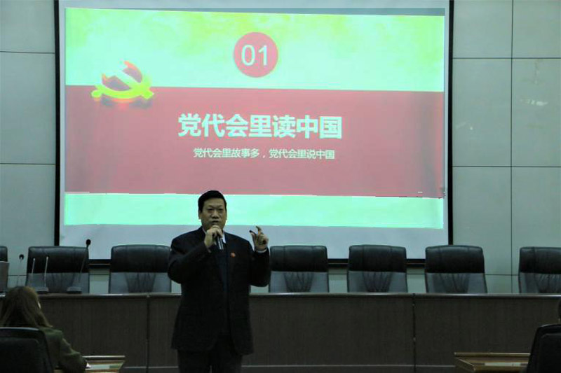 张进良以“十九大中描绘的蓝图,最能够充分享受的是谁?哪个群体最应该关注党代会?”提问的方式开场,吸引了青年学生的兴趣,随后从党代会中读中国、十九大中看中国、十九大里说青年三方面和全体学员进行了分享交流。他通过介绍党代会的历史、党代表的选拔等,指出中国共产党是历史和人民的选择,并从不忘初心、敢于承诺、自我改革三方面分析了中国共产党的品格作风;接着从青年的角度解读十九大,从未来享有更公平的物质分配机制、拥有更加公平的竞争环境和更宜居的现代生态环境等方面分析了十九大报告对青年人未来生活的影响。两个多小时的讲座,书记讲解通俗易懂、深入浅出,运用了大量详实数据和丰富案例。现场学员认真听讲,会场不时响起热烈的掌声。