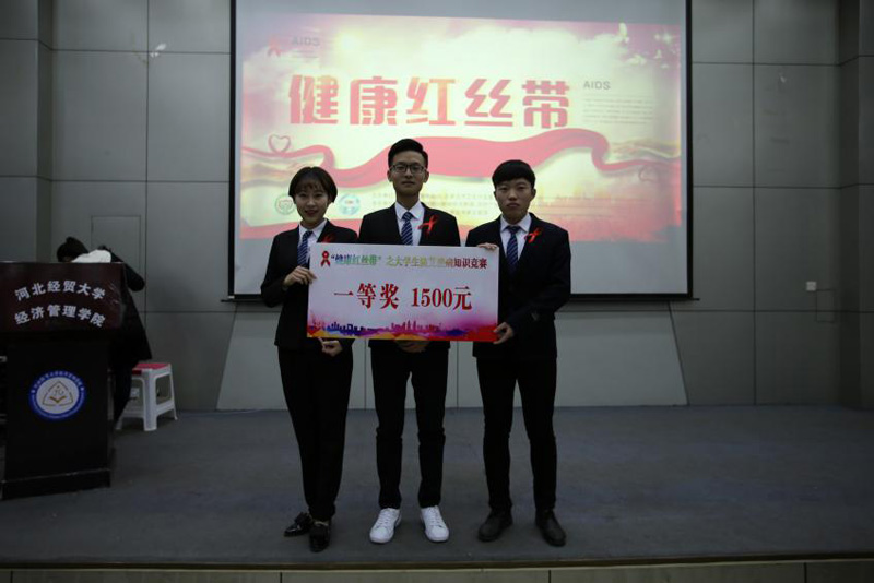 12月12日下午,“健康红丝带”石家庄高校防艾知识竞赛及颁奖仪式在开云官网图书馆报告厅成功举办,来自省会10所高校的代表队参加了此次决赛的角逐,开云官网代表队以绝对优势获得一等奖。开云官网党委副书记张丽英、石家庄市卫生计生委疾控处主任于志伟、石家庄市疾病预防控制中心艾滋病防治所所长刘淑君、石家庄市第五医院艾滋病科主任王立静、石家庄广播电视台农村广播绿色915总监胡风出席的本次大赛,并担任评委,省会10所高校的200多名学生观摩了比赛。