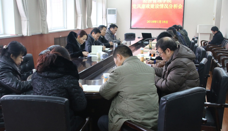 张进良根据本次分析会的要求,就本学期学院党风廉政建设情况进行了汇报。报告中认真分析了学院目前的廉政建设情况,针对学院党委落实党风全面从严治党主体责任情况、领导干部履行“一岗双职”情况、廉政风险点及产生的根源等逐一进行了分析与研判,并提出了进一步加强学院党风廉政建设的建议和举措。